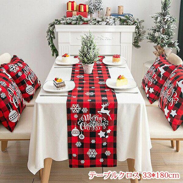 【楽天ス一パ一セ一ル10%OFF】クリスマステーブルクロス クリスマス 飾り テーブルクロス テーブルマット 33*180cm 食卓カバー デコレーション テーブルランナー テーブルカバー チェック柄 おしゃれ インテリア 耐久性 長方形 北欧 ホーム