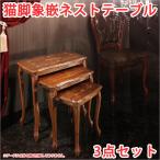 ネストテーブル おしゃれ ネストテーブル 木製 猫脚 家具 猫脚 テーブル 象嵌 アンティーク調家具 3点セット
