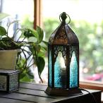 【10%OFFクーポン対象】モロッコランタン テーブルランプ ターコイズ 高さ24cm 6面のレリーフガラス 電球ソケット 中間スイッチ付き