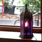 モロッコランタン テーブルランプ バイオレット 高さ24cm 6面のレリーフガラス 電球ソケット 中間スイッチ付き
