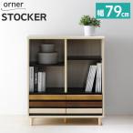 並べて使える オルネ オープンラック 2段 本棚 スリム 幅79 北欧 白 収納 シェルフ ロータイプ 脚付き 引き出し ONC-9080ST ストッカー 可動棚 木目調 おしゃれ
