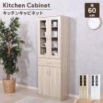 キッチンキャビネット 食器棚 幅60 高さ180 キッチンストッカー 引き出し付き ガラス扉 見せる収納 オークホワイト M5-MGKFGB00854OAKWH