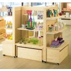 ゴンドラ 日本製 木製 ひのき ヒノキ 桧 陳列棚 ディスプレイ ストッカーワゴン付き ディスプレー kkkez キャスター付ボックス付属 ラック 壁面収納 什器