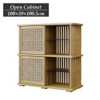 オープンラック ディスプレイラック キャビネット 幅100cm 和風 和モダン おしゃれ ホワイトオーク ナチュラル 扉付き