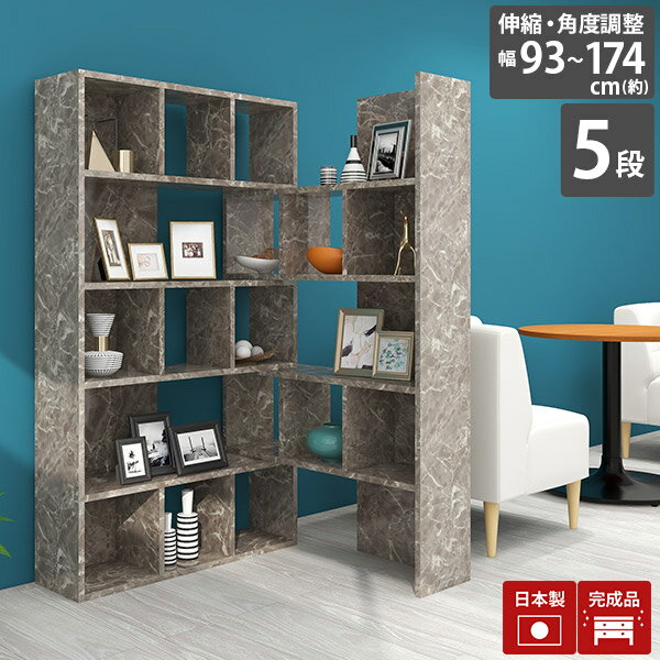 ディスプレイラック オープンラック 5段 高級感 シェルフ L型 本棚 リビング収納 ハイタイプ 完成品 国産 大理石風 ラック ディスプレイ 鏡面 美容室 棚 待合 仕切り リビング 収納 オープンシェルフ 北欧 おしゃれ 書斎 a4 モダン オフィス グレーストーン 【R+R90-5】 ☆