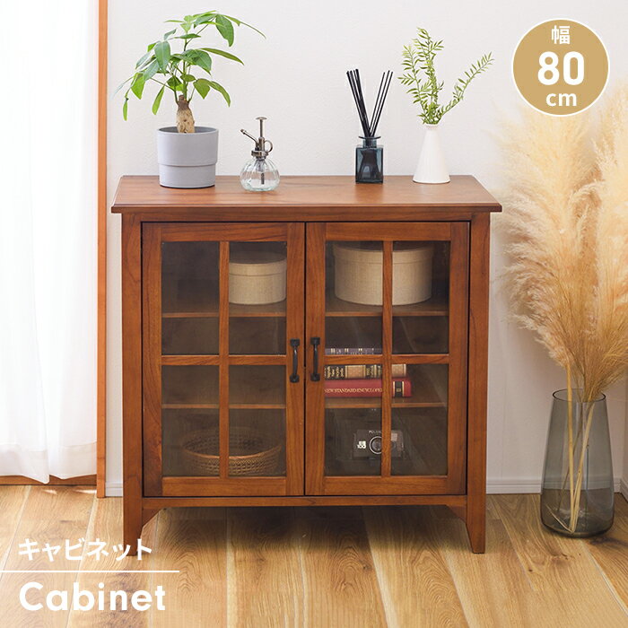 【楽天スーパーSALE10%OFF】キャビネット ガラス扉 幅80 木製 収納棚 チェスト 飾り棚 収納 ディスプレイラック リビングボード ロータイプ ナチュラル