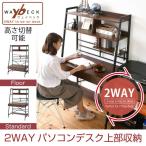 2WAY パソコンデスク 上部収納 幅 90cm 高さ調節 多機能デスク 木製 本棚付き ワーキングデスク パーソナルデスク シェルフデスク 代引不可 同梱不可