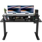 FEZIBO電動昇降式デスク スタンディングデスク 幅140cm 奥行き60cm 上下昇降デスク 収納棚 モニタースタンド ダブル引き出し 人間工学