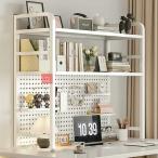 2WAY パソコンデスク 上部収納 幅 90cm 高さ調節 多機能デスク 木製 本棚付き ワーキングデスク パーソナルデスク シェルフデスク