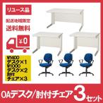 オフィスデスクOAデスク 平机 事務机 チェア 3人用セット デスク用チェア 中古 ニューグレー 配送地域限定 送料無料
