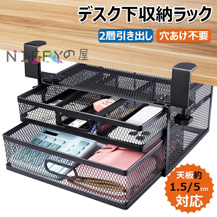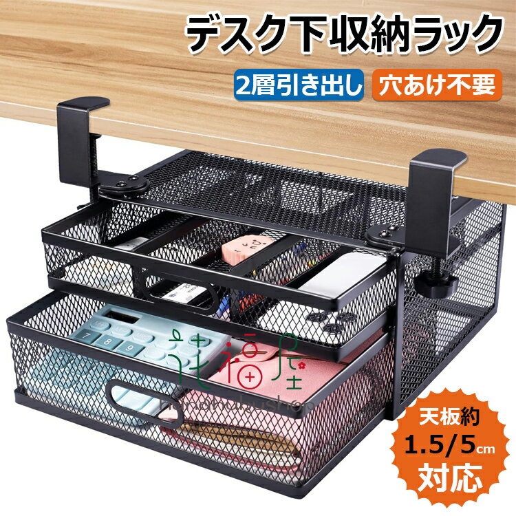 「10%OFFクーポン配布中」デスク下 収納 テーブル下収納 クランプ 机下 収納 2層の引き出し 後付けラックデスク 穴あけ不要 事務用品 小物整理 大容量 収納整理 仕切り収納 簡単な取り付 24.5×20×13cm