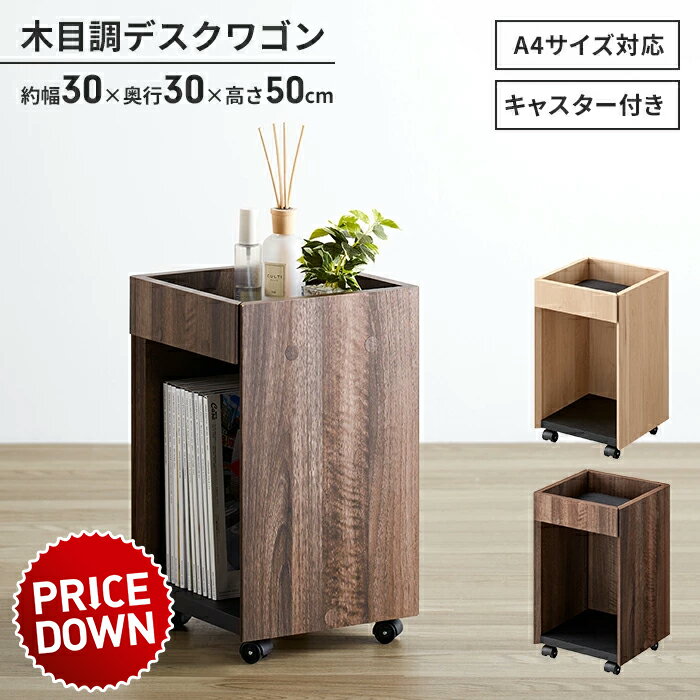 【楽天スーパーSALE10%OFF】【大幅値下げ】デスクワゴン 幅30 キャスター付き デスク下収納 木目調 スリム サイドワゴン 収納ラック A4サイズ 収納棚 おしゃれ ラック