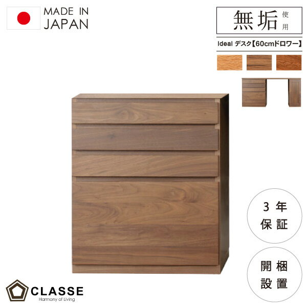 【期間限定10%OFF】ドロワー デスク 組み合わせ ワークスペース 勉強机 30cm 無垢 日本製 3年保証 木製 開梱設置 クラッセ イデアール