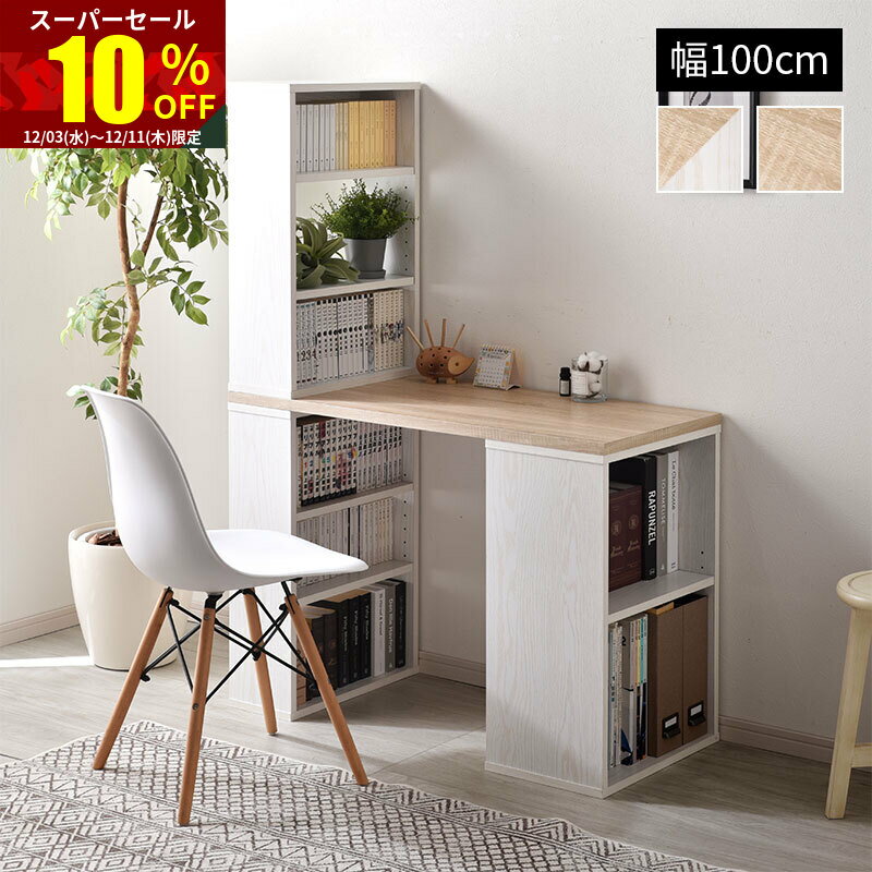 1年保証 パソコンデスク 幅75cm スリム ハイタイプ 収納ラック付き 棚付き 本棚 ハイデスク ラック一体型 PCデスク ワークデスク オフィスデスク 送料無料