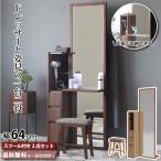 姿見ドレッサー ドレッサー スツールセット 収納 コンセント オーク ウォールナット スリム コンパクト 鏡台 姿見 姿見鏡 ミラー 全身 木製スツール
