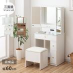 ドレッサー 完成品 幅60cm 三面鏡 北欧風 姫系 コンパクト 省スペース 収納付 スツール付 コンセント付