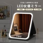 女優ミラー 卓上ミラー led 充電式 折りたたみ コンパクト ドレッサー 卓上スタンド かわいい 鏡 ライト 日光 軽量 メイクミラー 持ち運び
