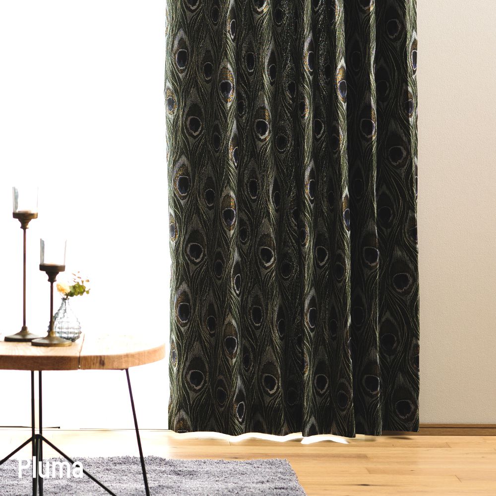 [11%OFF!12/1限定クーポン][既製サイズ]カーテン おしゃれ カーテン ドレープ 厚地 クジャク 孔雀 くじゃく 鳥 非遮光 おしゃれ 洗える ウォッシャブル UVカット YH846 プルーマ 幅90cm×丈135cm 丈178cm 丈200cm 2枚組 OKC4