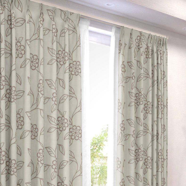 花柄 形状記憶 遮光ドレープカーテン 幅100×丈105/210cm ブラウン