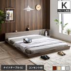 2/2 8:59まで最大10%OFF!爆買 Platform Bed ローベッド キング ナイトテーブルLR(左右) 棚付きコンセント2口 木製ベッド