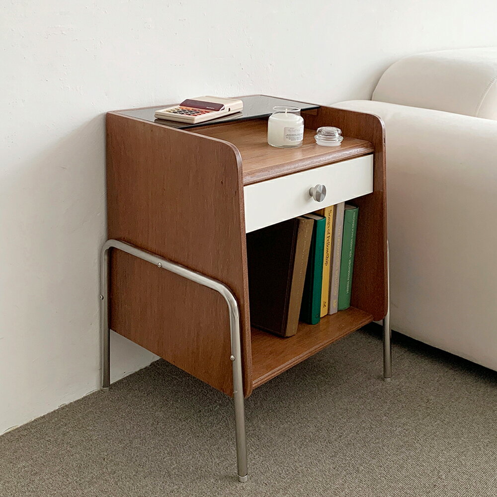 【全商品3%OFF】 CAGUUU レトロポップサイドキャビネット ナイトテーブル 小物収納付き 多機能サイドテーブル おしゃれなベッドサイド家具