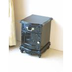 ナイトテーブル 扉右開き 前面ラウンドタイプ 扉:薔薇の彫刻 ブラックグロス色 輸入家具 オーダー家具