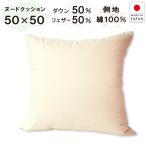 抗菌防臭加工無料 50×50cm ダウン50% フェザー50% ヌードクッション 綿100% 日本製 中身 羽毛 50角 ダウンクッション