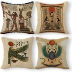 古代エジプト柄クッションカバーホルス/ファルコン/太陽神ラーリネンスローピローケース45.7cm4枚セットソファベッド輸入品