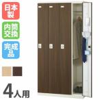 【法人送料無料】 【日本製/業務用】 更衣ロッカー 4人用ロッカー スリムタイプ ダイヤル錠付 ハンガーパイプ 網棚 鏡 ネクタイ掛 傘立 滴受付 TY-0073