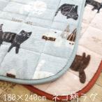 ネコ柄 洗える 蓄熱保温ラグ フランネル 長方形 3帖用 約180×240cm 猫 ねこ あったか 暖かい 冬物 送料無料