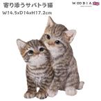 置物 動物 かわいい 寄り添うサバトラ猫 ネコ 高さ17.2cm woobia おしゃれ 大きい 玄関 インテリア 庭 ガーデン オブジェ 大型 ウービア 面白い