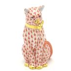 ヘレンド 猫 置物 座っているねこ ピンクの鱗模様 手描き ネコ 磁器製 飾り物 Herend