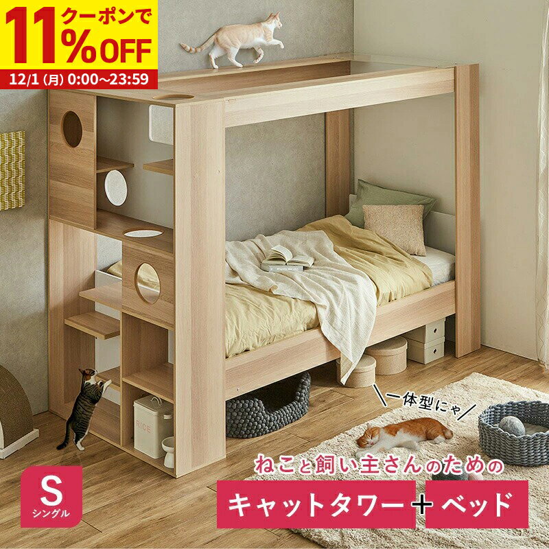 【11%OFFクーポン配布中★12/1に使える】 ベッド システムベッド キャットタワー付き 収納付き オープンラック 木製 一体型 キャットウォーク 猫家具 猫タワー 猫用 ねこ 運動 遊び おしゃれ