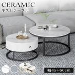 10%OFF期間限定★レビュー特典・センターテーブル ローテーブル 引き出し収納 丸 ネストテーブル 2個セット セラミック 円形 収納付き 大理石調 入れ子式