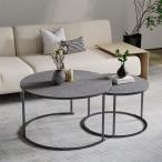 ネストテーブル 丸 ローテーブル センターテーブル 大小 2個セット 石材天板×スチール脚 幅80cm+幅60cm リビングテーブル 大きめ おしゃれ 円形 モダ