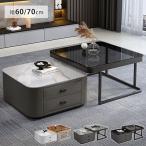 7%OFFクーポン★ネストテーブル 2個セット センターテーブル ガラステーブル ローテーブル セラミックテーブル 引き出し収納 入れ子式 幅60/70cm 丸テーブル