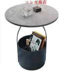 サイドテーブル スリム 丸 丸型 ソファ おしゃれ ブラックスチール 石目調デザイン 2タイプ