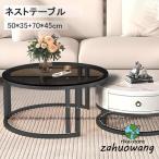 円形ネストテーブル 2個セット メタルベース 70×45+50×38 モダン重ねて省スペース、広げて便利に使えるリビングの万能コーヒーテーブル