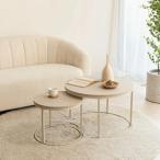 センターテーブル ネストテーブル Lumo ルモ リビングテーブル 2個セット 入れ子テーブル ラウンドテーブル ローテーブル 高級感 トラバーチン柄 NCT-T7050