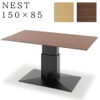 昇降テーブル 開梱設置付き ダイニングテーブル 幅150cm 突板 長方形 無段階 ペダル 昇降式 ガス圧昇降式 北欧 高級感 サンキ ネスト 150昇降テーブル LBR MBR