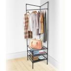 コーナーハンガーラック スリム コートハンガー 3段 棚付き 玄関 衣類 収納 シンプル 洋服ラック 省スペース ブラック コーナーハンガーラック