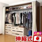 伸縮クローゼット 上置き棚付き幅188-305cm 日本製 大型クローゼット ハンガーラック 送料無料 上棚 カーテン付き