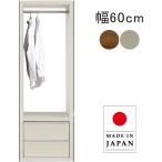 ハンガーラック スリム 2段 引き出し 棚 木製 おしゃれ ワードローブ チェスト 幅60cm 高さ180cm 国産