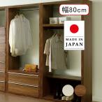 ハンガーラック 木製 ワードローブ 幅80 2段 引き出し 棚 おしゃれ チェスト付き 服吊り 木目 日本製