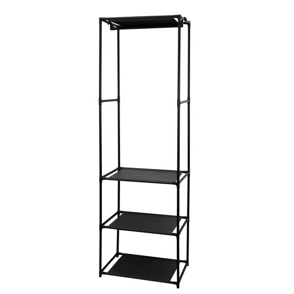 シンプル ハンガーラック 3段 幅52cm×奥行き36cm×高さ166cm マルチラック ラック フリーラック 収納 棚 ハンガー 省スペース コンパクト 組立簡単 工具不要 整理整頓 軽量 ラクラク移動 一体型 衣類 タオル 帽子 バッグ 小物 マルチ 黒
