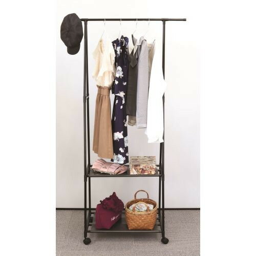 シンプル ハンガーラック 2段 キャスター付き 幅83cm×奥行43cm×高さ156cm ラック 収納 衣類収納 マルチラック ワードローブ スリムラック 棚 軽量 移動 らくらく おしゃれ 省スペース 簡単組立 工具不要 衣類 整理整頓 洗濯 リビング 子供部屋