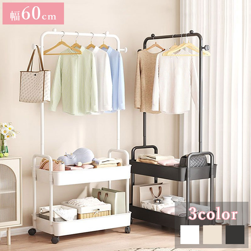 【楽天スーパーSALE50%OFF】 ワゴン付き ハンガーラック キャスター付き トローリーハンガー 超軽量 大容量 機能的 バスケット付き 棚付き コンパクト スリム 省スペース シンプル かわいい おしゃれ 一人暮らし 子ども スッキリ 整理整頓 収納ラック 新生活 落下防止
