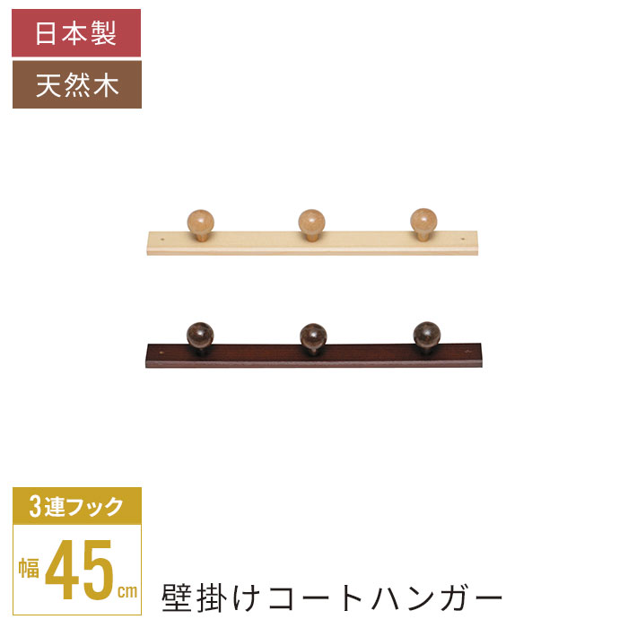 【楽天スーパーSALE10%OFF】コートハンガー 壁掛け 3連 フック 天然木 木製 杉 日本製 玄関 おしゃれ 壁 洋服掛け ハンガーフック コート掛け