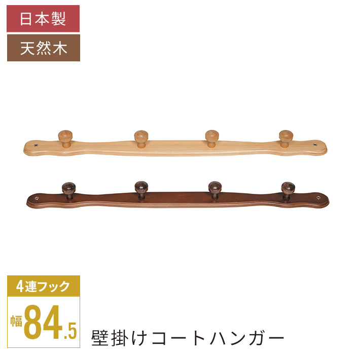 【楽天スーパーSALE10%OFF】【値下げ】コートハンガー 壁掛け 木製 ハンガーフック 4連フック 幅85 北欧風 おしゃれ 壁 ウォールフック ウォールシェルフ 洋服掛け 帽子 カバン バッグ コート掛け 日本製 玄関 トイレ キッチン 洗面所 天然木 杉 完成