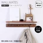 棚付き 壁掛けフック 黒胡桃 6連フック ウォールフック ウォールハンガー 天然木製 真鍮 おしゃれ ナチュラル 整理整頓 北欧モダン 壁掛けハンガー